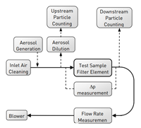 該空氣過濾器測試系統(tǒng)旨在滿足EN1822-4附錄E“0.3微米至0.5微米粒徑顆粒的效率泄漏測試”的要求。該標(biāo)準(zhǔn)的這一部分與由于其幾何設(shè)計(jì)而無法掃描的過濾元件有關(guān),在這種情況下,確定整體過濾效率對于質(zhì)量控制來說是足夠的。與替代的油霧測試程序相比,這種方法對有缺陷的過濾器件提供了更可靠且更快速的結(jié)果。此外,在測試過程中因測試受到的氣溶膠負(fù)載要少得多。所需的測試氣溶膠是由特殊的氣溶膠發(fā)生器(ATM 221)使用標(biāo)準(zhǔn)的DEHS測試液產(chǎn)生的。為了上游濃度測量,使用第二個(gè)光學(xué)粒子計(jì)數(shù)器和串聯(lián)的自調(diào)節(jié)稀釋系統(tǒng)(DIL 540/C)。另外一臺(tái)光學(xué)粒子計(jì)數(shù)器測定下游顆粒數(shù)濃度。得到的整體過濾器效率與名義過濾器效率進(jìn)行比較,給每個(gè)測試的過濾器一個(gè)最終的“通過”或“失敗”結(jié)果。